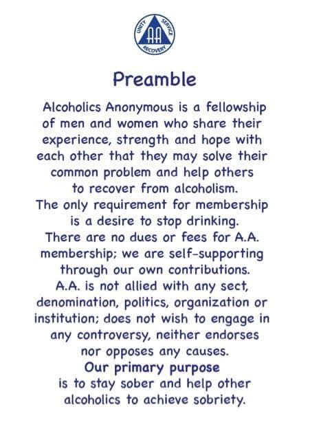 Alcoholics Anonymous Preamble Printable