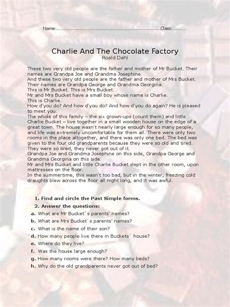 Reading Charlie and the Chocolate Factory Chapters 13 worksheet