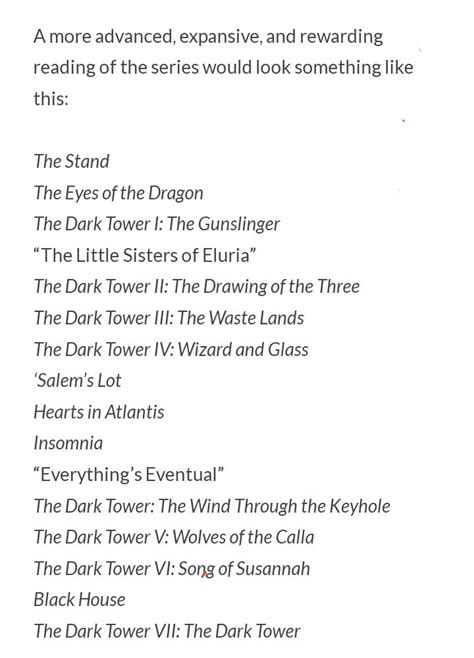 Dark Tower Extended Reading Order. Web here is my extended reading order for the dark tower, including most related works, as i've recently updated and extended it: Insomnia hearts in atlantis everything’s eventual the talisman black house wolves of the calla.