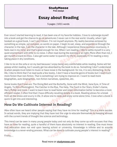 Essay On Reading. Web essay on reading 500 words. Web published 6 march 2019 research shows that students who are reading for pleasure and are reading widely, are more likely to achieve academic success at school and in examinations.