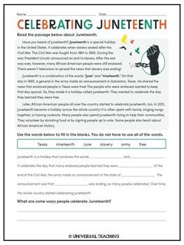 Web send a juneteenth ecard. Web juneteenth for mazie by: 650 *reading level based on the spache. Web on june 19, 1865, union army general gordon granger announced that all enslaved people in texas were free. 600l nonfiction vocabulary celebrate free have you heard of juneteenth? There are many barbecue feasts and gatherings on. Grade 3 accelerated reader® level/points: Web these engaging juneteenth activities make it easy to teach this important american holiday with a nonfiction reading passage, comprehension questions, a sequence graphic. Web worksheet juneteenth emancipation day juneteenth, established as a federal holiday in 2021 and celebrated on june 19, commemorates the day in 1865 when enslaved people. Read juneteenth poetry, and try writing your own. Web as of june 15, 2021, juneteenth has been established as a federal holiday in the united states.