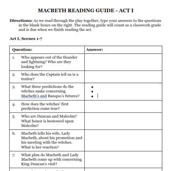 Macbeth Act 1 Reading Guide. How would you characterize the mood that is set with the play? Web 1 name_____ date_____ macbeth: