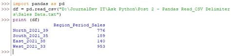 Python pandas csv delimiter share follow edited dec 31, 2022 at 16:28 petezurich 9,065 9 41 57 Df = pd.read_csv(c:\users\rahul\desktop\example.csv, sep = '|') colon separator Web import csv csv. Web pandas.read_csv(filepath_or_buffer, sep=', ', delimiter=none, header='infer', names=none, index_col=none,.) it reads the content of a csv file at given path, then loads the content to a dataframe and returns that. My files have data with single space, double space and a tab as delimiters. Reader ( f , 'unixpwd' ) a slightly more advanced use of the reader — catching and reporting errors: Web this method uses comma ‘, ‘ as a default delimiter but we can also use a custom delimiter or a regular expression as a separator. For the field separator and ,. Thus, a vertical bar delimited file can be read by the below syntax: See text import wizard for more information about delimiters and advanced options.