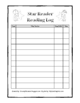 Front side of starthemed reading log Reading log, Star reading