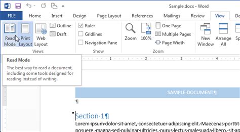 Turn off Reading Mode in Word 2013